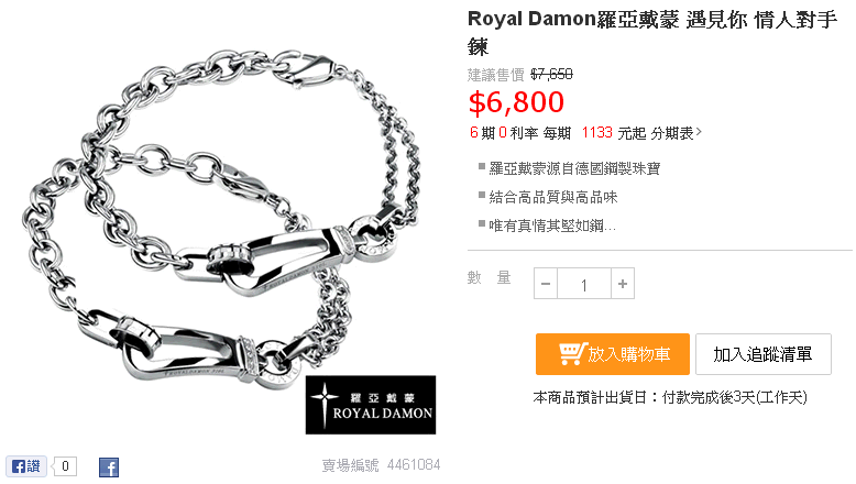 幣16250元。還沒有經濟能力的「同協」們,打工賺錢粉心苦低,可以考慮一條不到1.5張小朋友的白鋼手鏈唷~~~~~~~~~(更多商品資訊雅虎奇摩商城網址)