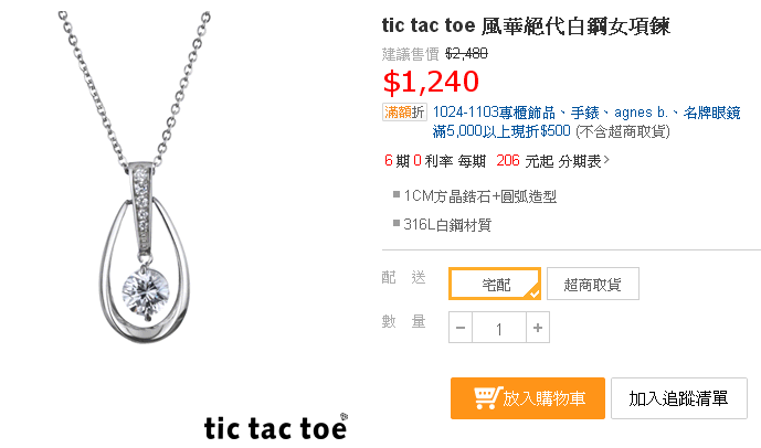 推薦1:tic tac toe「白鋼項鍊」送人、自戴兩相宜!