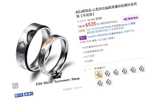 作(如下)在百貨公司逛街挑選心目想要「敗」的鋼飾、白鋼飾品之後,就可以到網路上挑選進行購買,絕對會比百貨周年慶還省很多唷。比較推薦的網購 這邊就首推大家